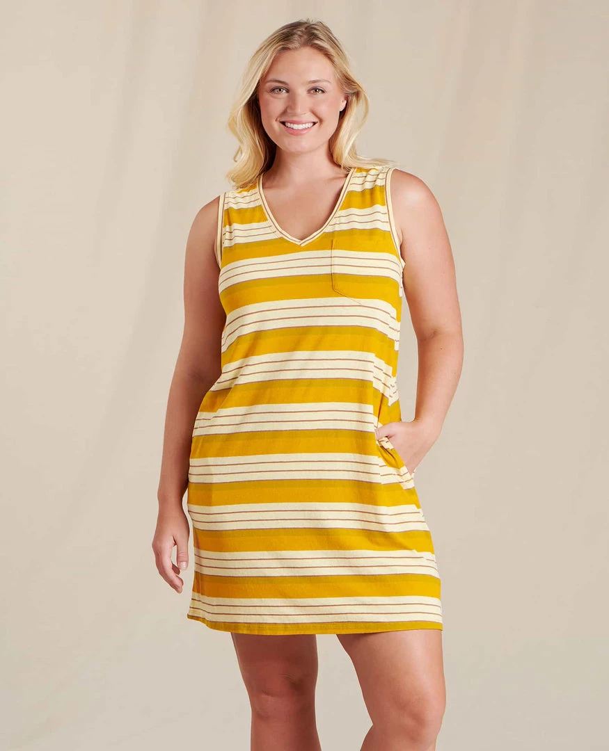 Low on fuss but high on fun, this tank dress will get you where you need to go with swagger to spare. Bold retro stripes meet the sustainable dream team of hemp and organic cotton, and hand pockets give you space to stash essentials. Add a ball cap, some sneaks and congratulations—the perfect outfit has been born.