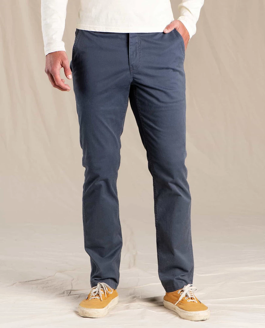 All work and no play make twill a dull fabric. So we jacked up these khakis with fresh threads and an updated fit for all day/every day versatility. Our #1 Mission Ridge Lean Pant is comfortable thanks to organic cotton, rugged thanks to polyester, and a dash of spandex stretch keeps things limber. The lean cut fits a bit trimmer through the hip, thigh and knee (versus the regular fit), with a leg opening that’s 1″ slimmer.