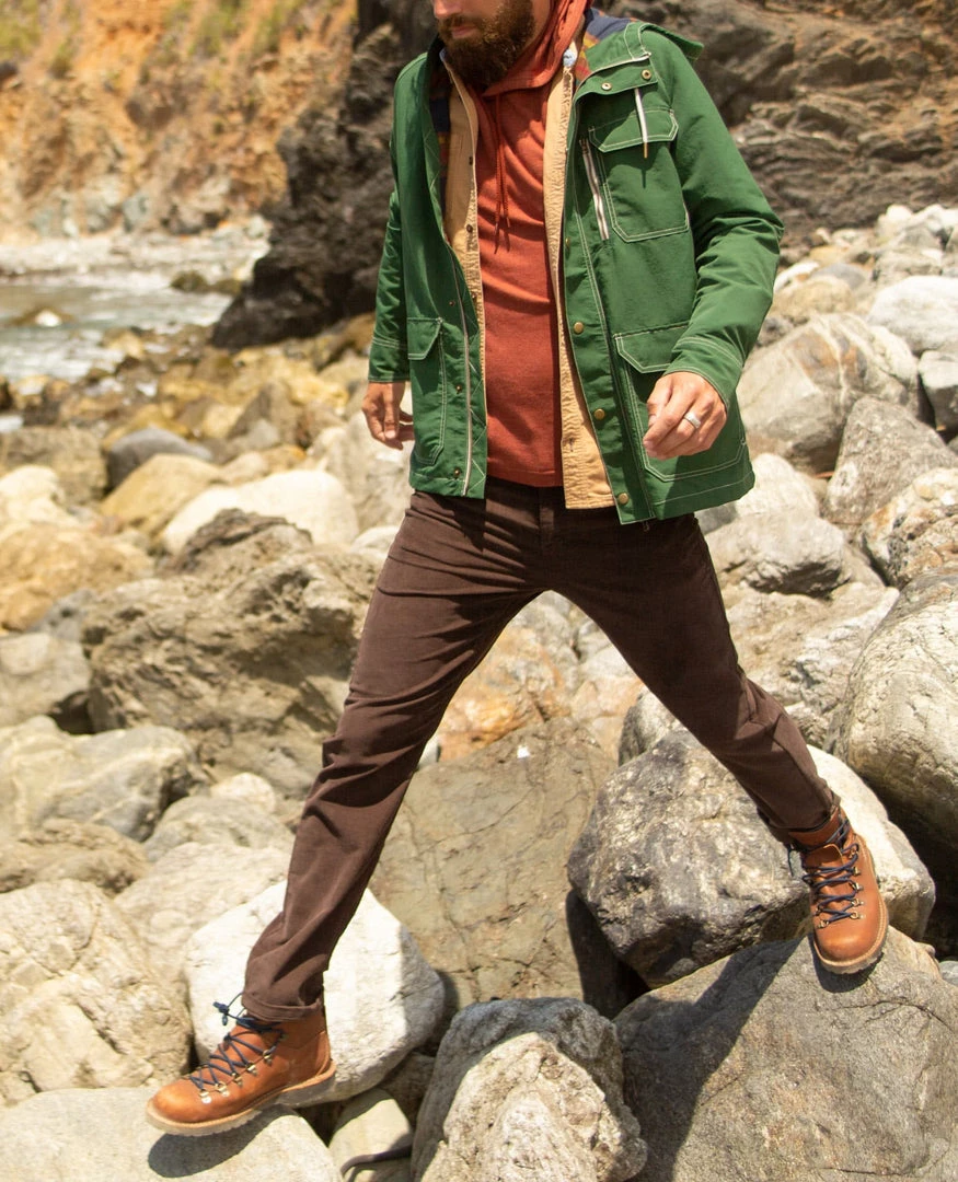 Organic cotton’s comfort meets durable polyester and spandex stretch in a tough-yet-tender twill for work and play. These ain’t your old math teacher’s chinos.