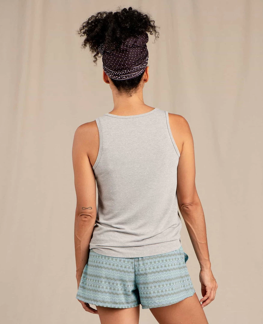 This go-to tank is anything but basic. Made from a blend of recycled polyester and hemp with just a touch of stretch, this tank begs for adventure and thrives on the dance floor. Rock with her all day and then layer up when the sun goes down, she’s game for anything.