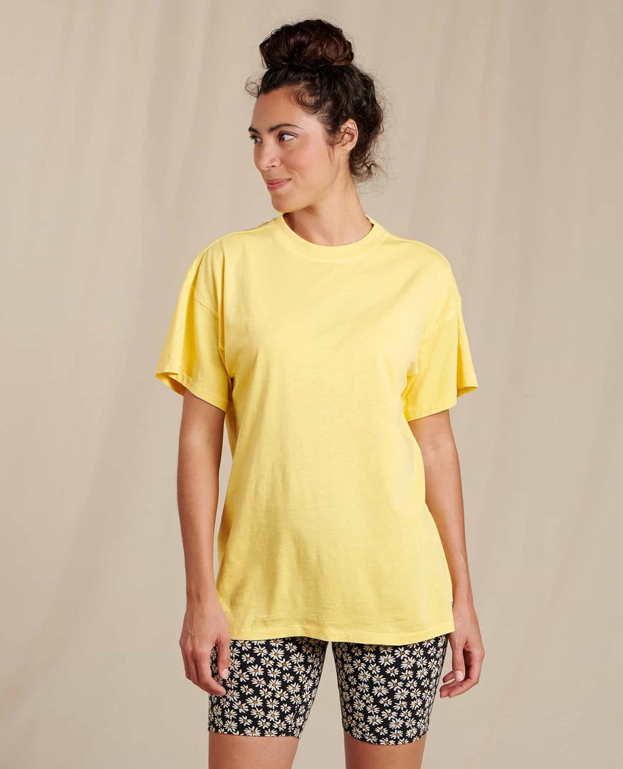 The fashion gods have demanded oversized tees, and who are we to disagree? This crew will be your go-to straight off the rack, though it’s broken-in softness gives it “mom’s closet” energy in the best way. Set it up with some bike shorts and roller skates: The ‘90s are calling and you’ve got to go.