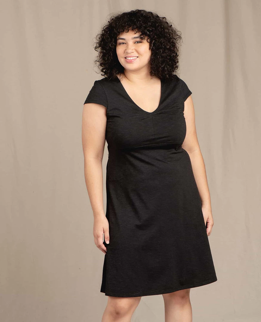 A dress so nice we named it twice. The seemingly simple yet downright bombshell Rosemarie is made of our eco-friendly Samba fabric (TENCEL™ Lyocell, organic cotton, spandex), giving it the kind of versatility other dresses only dream of. It breathes and moves and follows your curves. It dresses up and dresses down. It flatters for days with a graceful V-neck, horizontal bust pleats, and an empire seam that flows into a soft, A-line drape. And the best part? A secure hand pocket! Looks like you CAN improve on perfection.