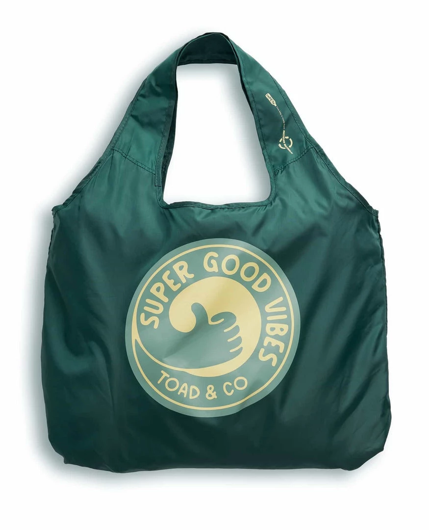 Single-use bags are so last century. Enter our Super Good Vibes Reusable Bag. Made from recycled plastic bottles (read: durable, lightweight, and Earth-friendly), this bag is collapsible, easy to stuff, and holds up to 40 pounds. Carries it all from farmers market to beach picnic – this is what super good vibes are made of.