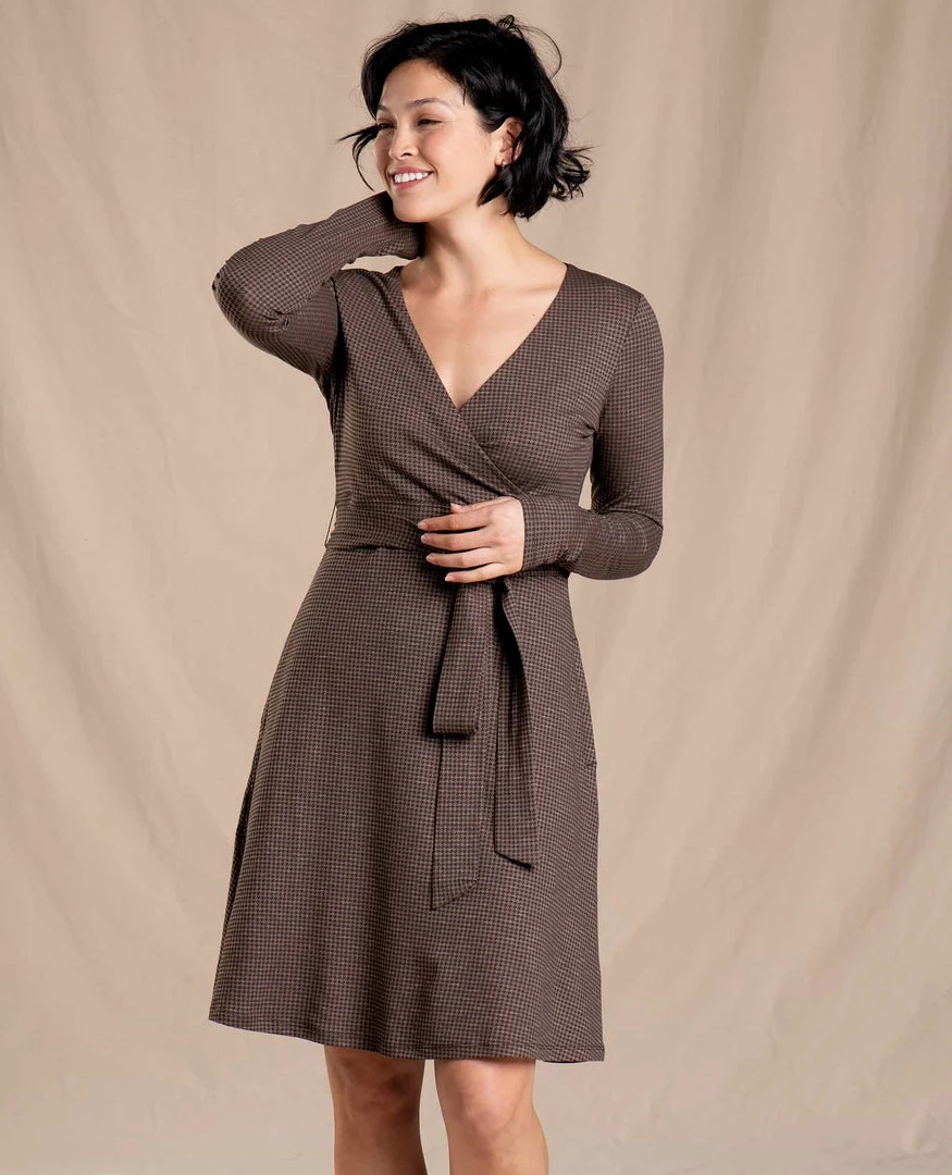 It’s a bold claim, but we’re sticking by it: Every woman looks great in a wrap dress. Made from our exclusive Samba fabric, the Cue Wrap Dress naturally wicks moisture (thanks, organic cotton!), and keeps great drape after multiple wears. A perfect travel dress or go-to for its easy styling (slip it on, tie it up) and on-seam hand pockets.Also offered in a cafe sleeve.