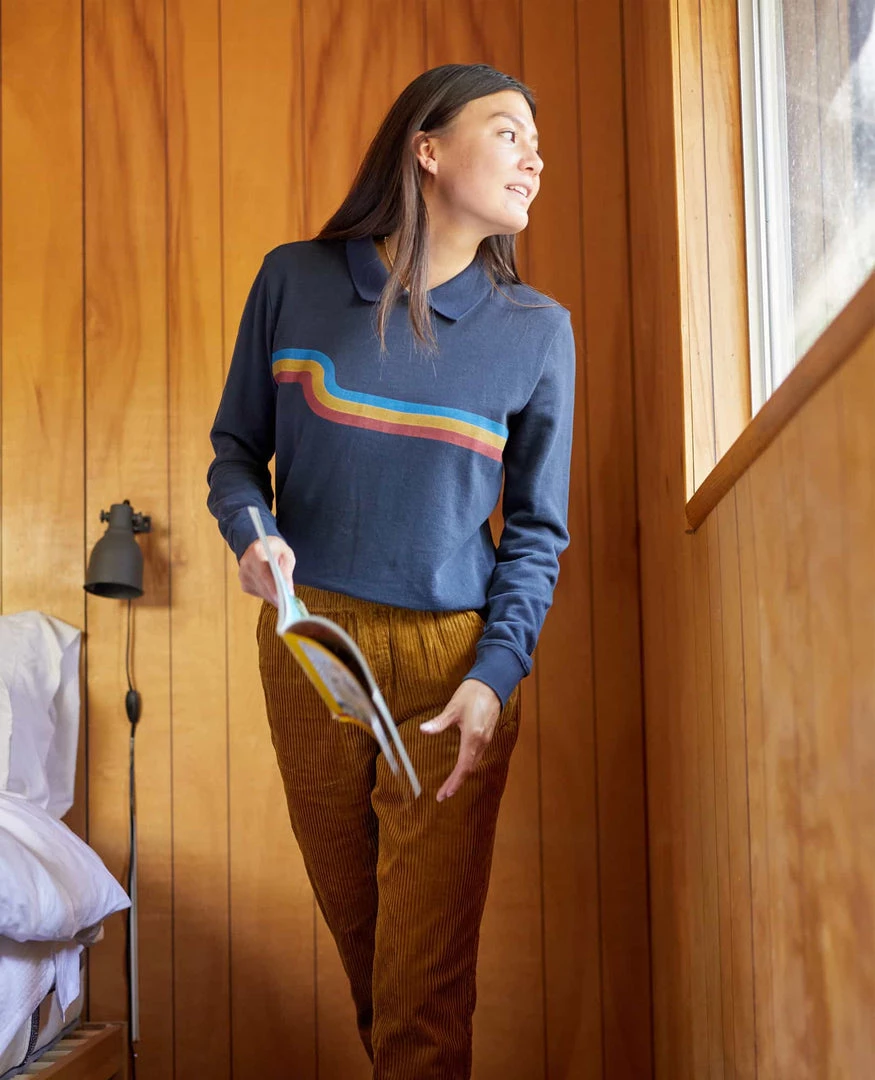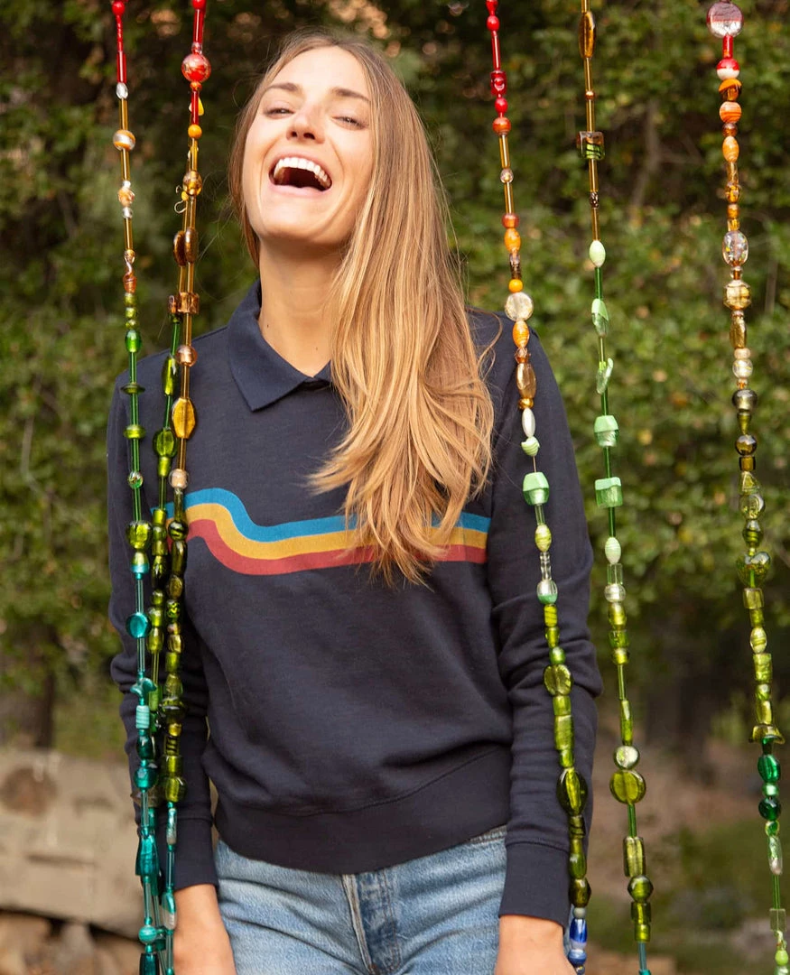 Once you see this crew, you know you’ve got to have it. A zap of ‘70s groove across the chest calls for playing hooky to follow the band, but a low-key collar and 100% organic cotton means you’re responsible enough to check in at home before you hit the road.