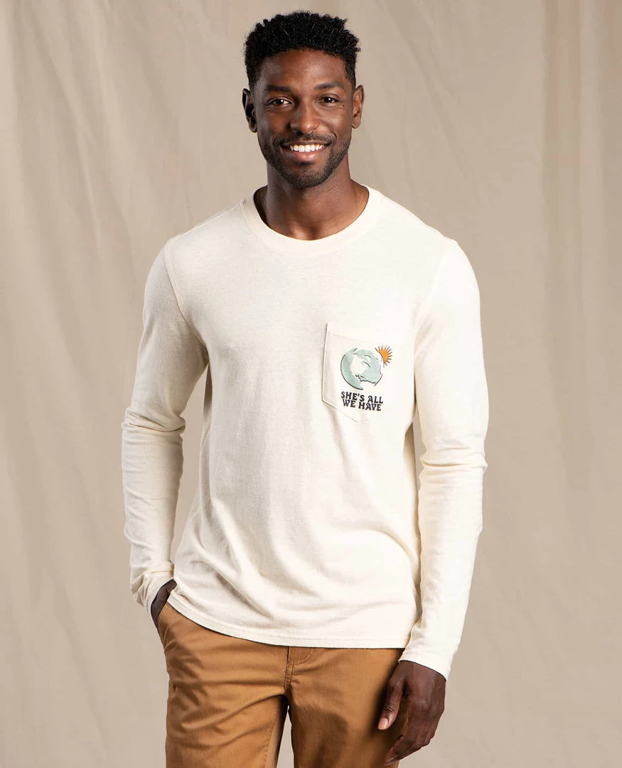 Sometimes you just need your clothes to do the talking for you. This long-sleeve graphic tee designed by one of our favorite local artists is guaranteed to bring a grin to all who glimpse it. Meanwhile, you’ll be smiling because this classic crew is made from a blend of hemp and organic cotton, making it tough, breathable and soft.