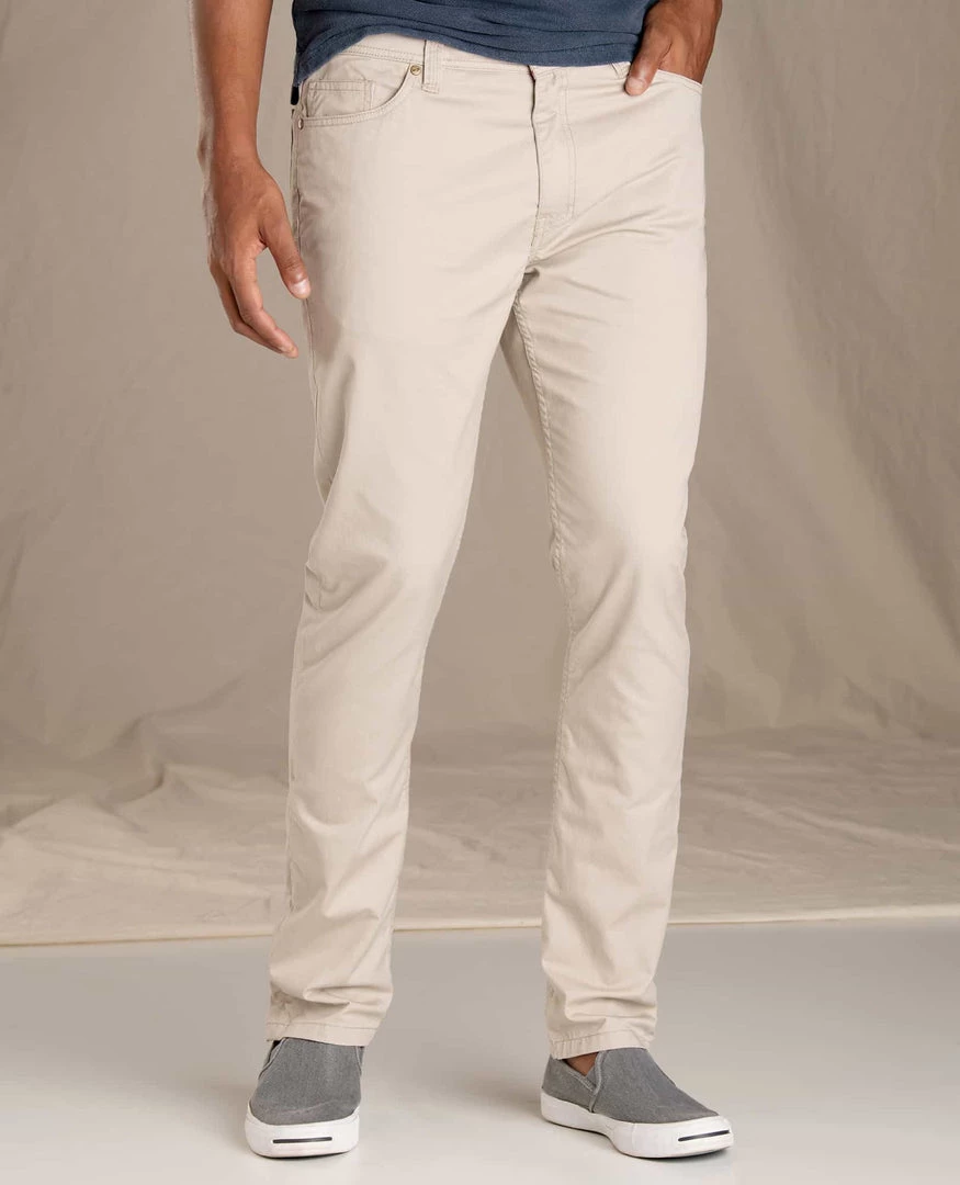 Organic cotton’s comfort meets durable polyester and spandex stretch in a tough-yet-tender twill for work and play. These ain’t your old math teacher’s chinos.