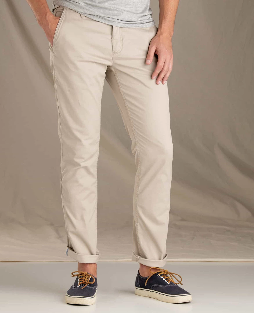 All work and no play make twill a dull fabric. So we jacked up these khakis with fresh threads and an updated fit for all day/every day versatility. Our #1 Mission Ridge Lean Pant is comfortable thanks to organic cotton, rugged thanks to polyester, and a dash of spandex stretch keeps things limber. The lean cut fits a bit trimmer through the hip, thigh and knee (versus the regular fit), with a leg opening that’s 1″ slimmer.
