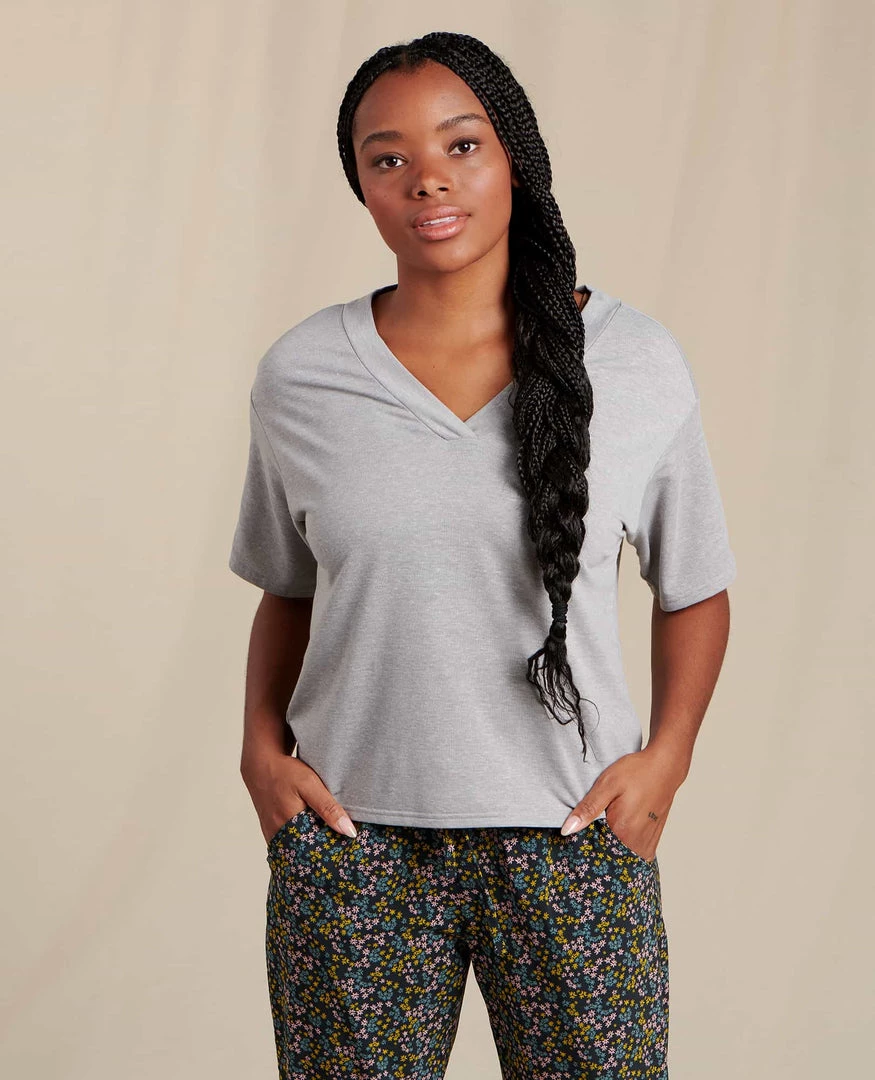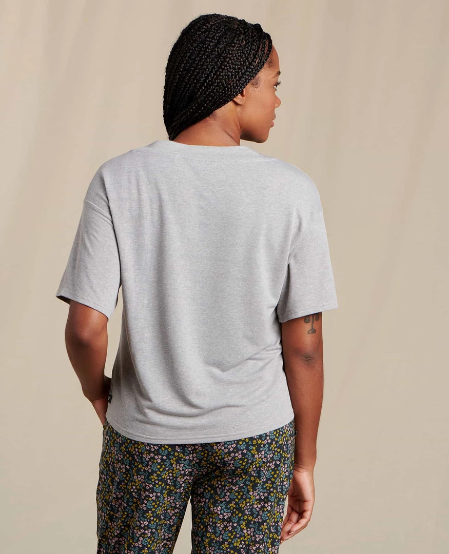 Mirror mirror on the wall, who’s the easiest basic of them all? A boxy, oversized fit gives this tee a retro vibe, but her recycled polyester/hemp fabric tells an eco-story that’s 100 percent now. A slight crop means she’ll tuck well into a skirt, or wear her over your best bike shorts for bummin’ around in style.