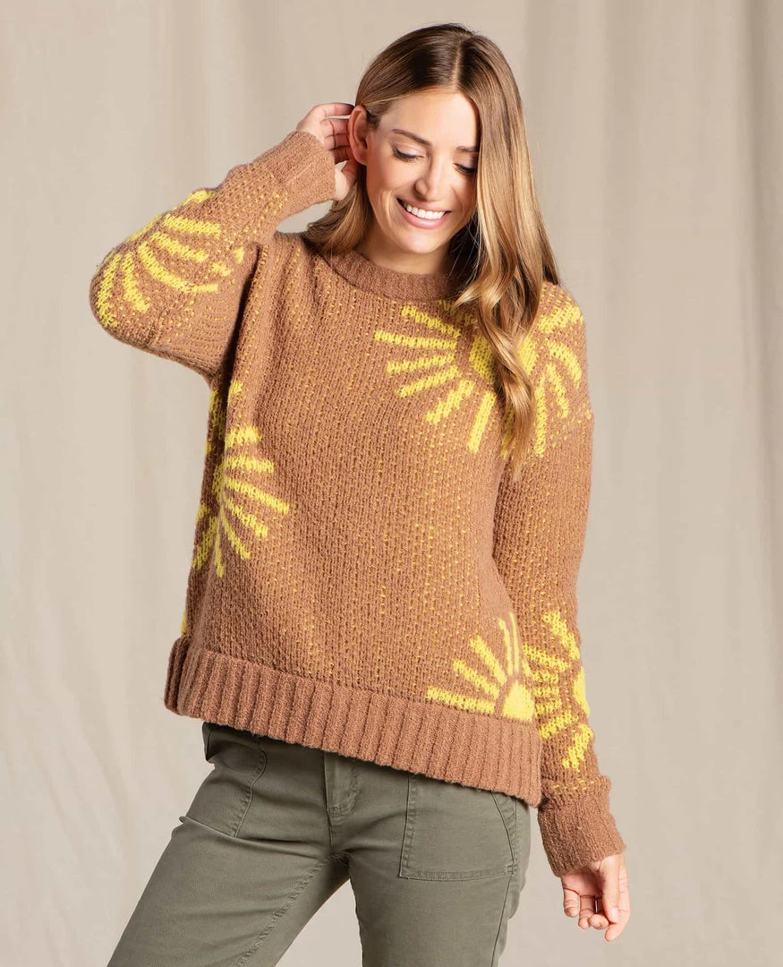 Bring a touch of summer to your fall wardrobe. This cozy sweater’s oversized fit and luxe feel make it the perfect companion in brisk weather, while the pop of sunshine keeps gray-day blues at bay. Flattering without too much effort, toss it on with pants or a skirt and let the compliments roll in.