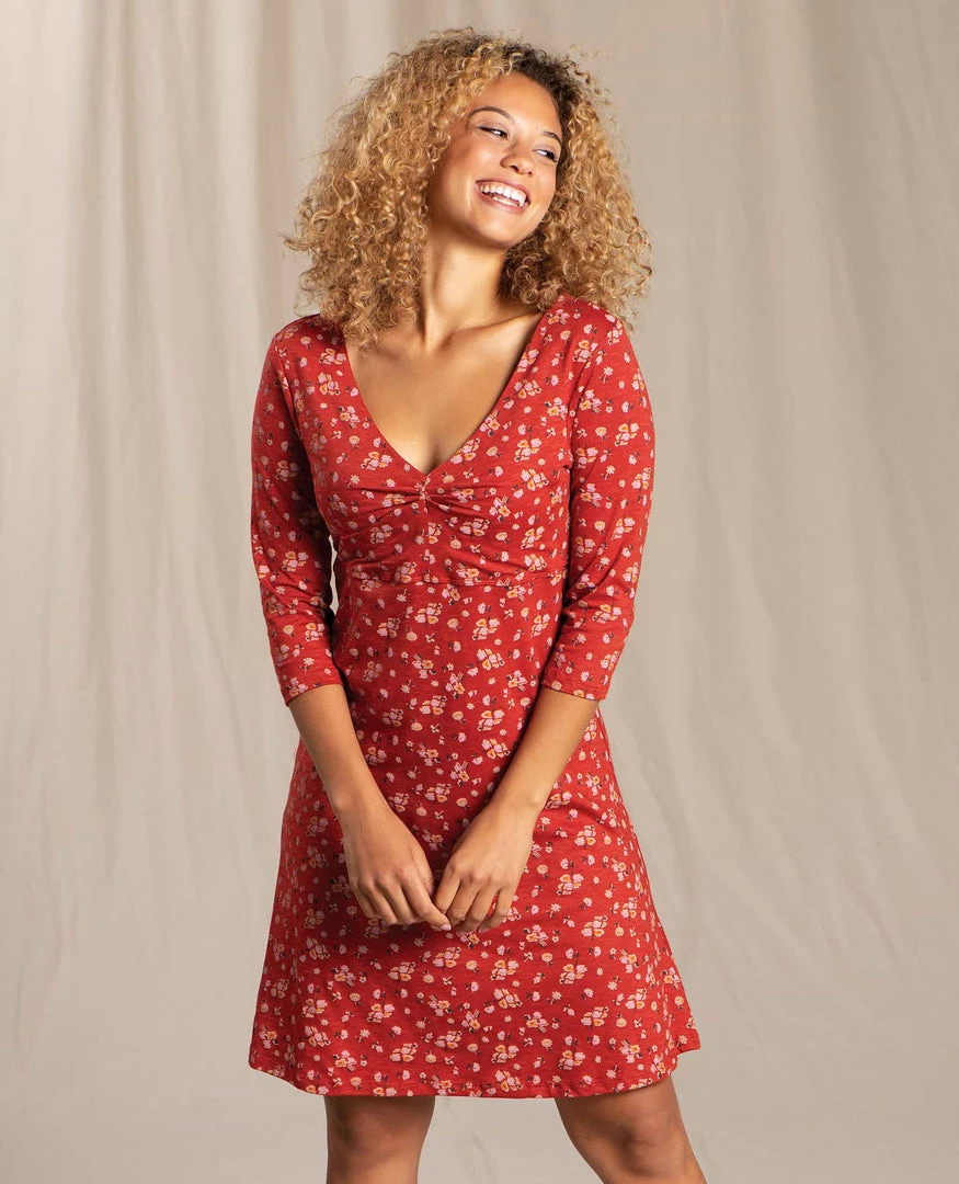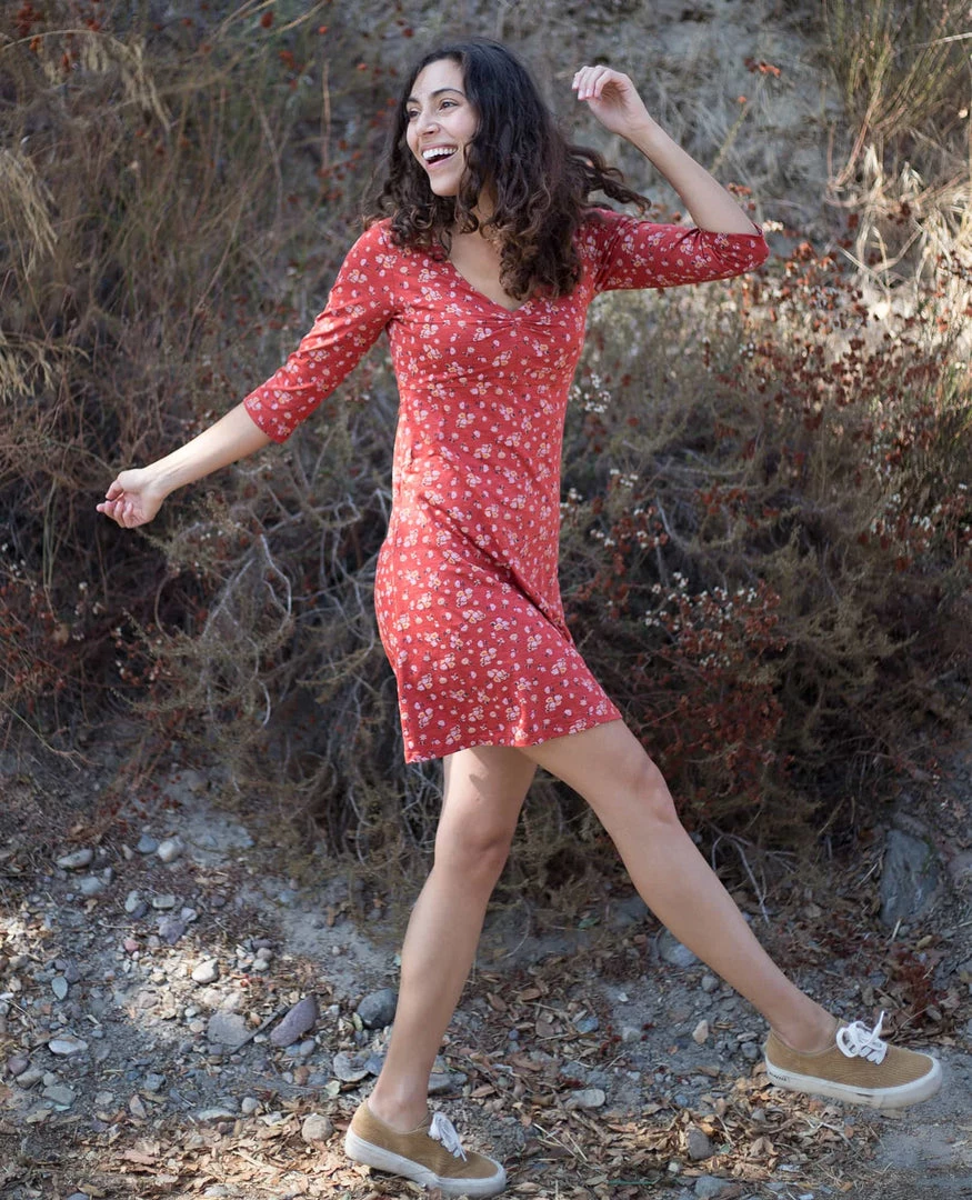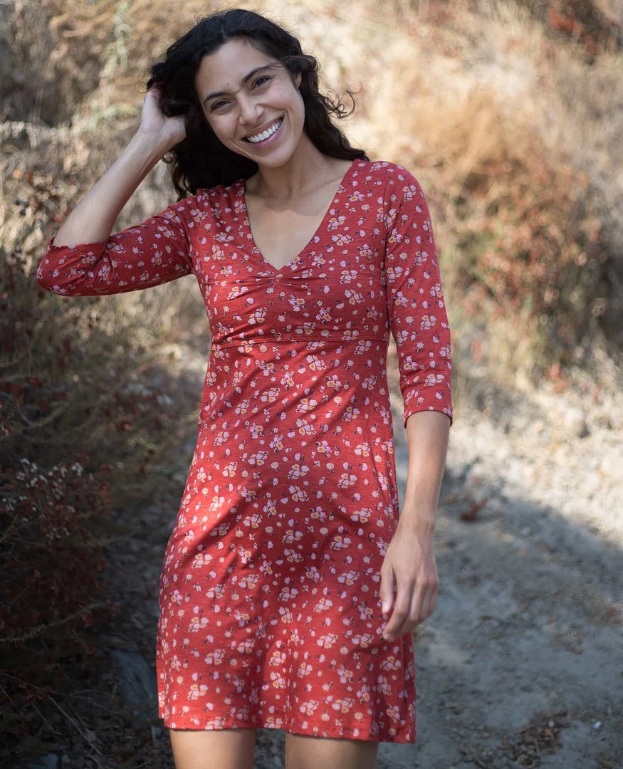 With clothes, there’s no such thing as unconditional love. We want great fit, form and function, or nothing at all. With that in mind, we propose the Rosalinda Dress. With a complementary shape, a stretchy Samba knit blend of TENCELâ„¢ Lyocell, organic cotton, and spandex, and work-to-play adaptability, there’s no limit on how happy you two will be together. Benefits include a V-neck, bust pleats, double-layer empire bodice, three-quarter sleeves, zipper hand pocket, and an A-line drape to the knee.