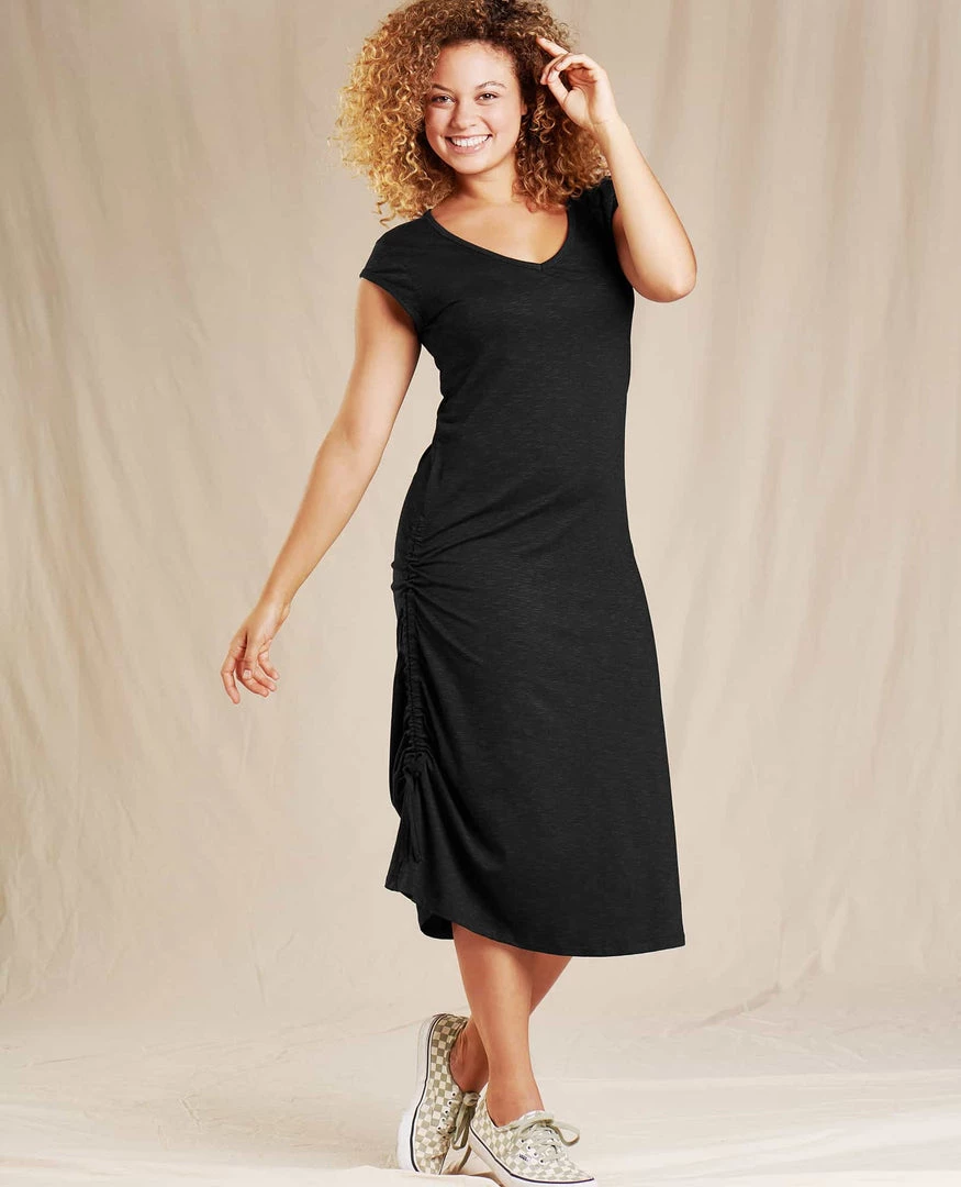 Once in a blue moon a dress comes along that looks good on every woman – almost like the muse herself designed it. We’ve updated it this season with our favorite Samba fabric. A lusciously soft, supple blend of organic cotton and TENCEL™ Lyocell (plus a touch forgiving spandex) is the magic ingredient in this masterpiece that knows just where to curve and where to drape. Adjustable drawstring cord along the right side gives it several different looks. #IWokeUpLikeThis #Flawless