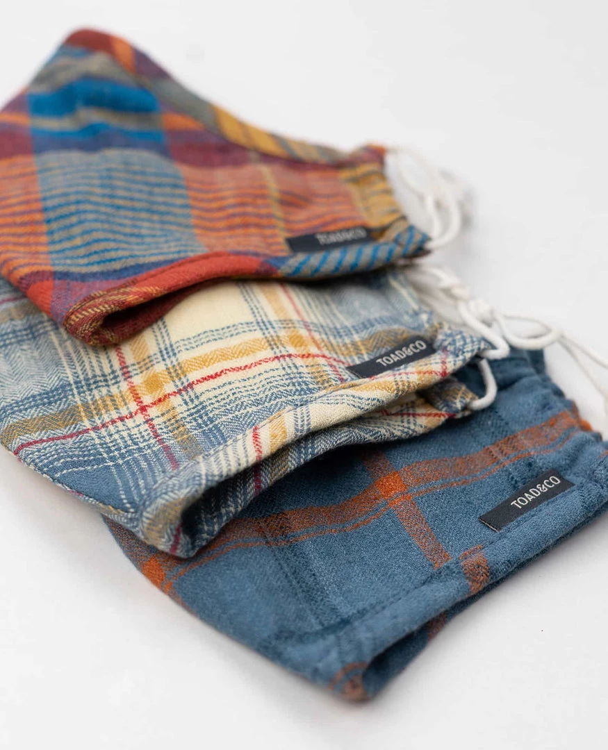 Reusable, washable, and sustainable. Our Re-Form lightweight flannel Face Mask is moisture-wicking, breathable, and made from recycled materials straight from our own apparel production. This mask also features a filter pocket and can be tied to adjust for a custom fit.