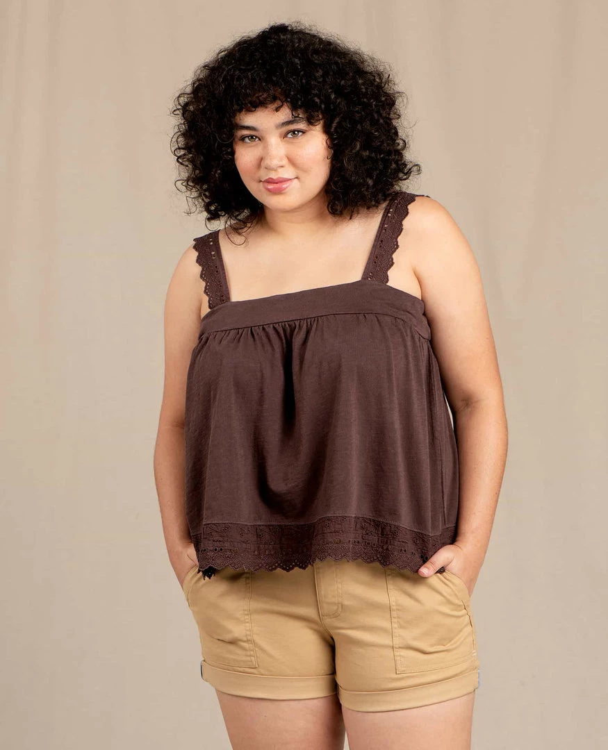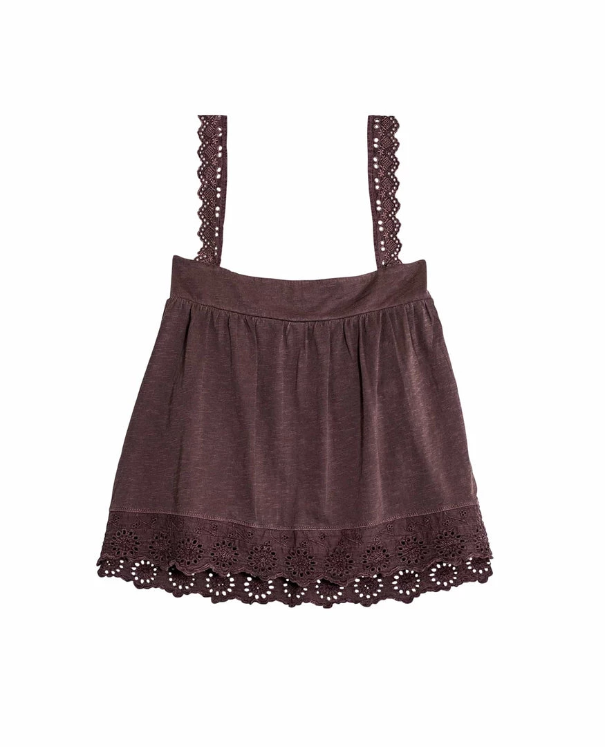 Festive yet functional, this retro-inspired tank fuses planet-friendly comfort with a free spirit attitude. Fun details like a lace-lined top and opening with a gentle slub texture throughout will make this your Springtime favorite.