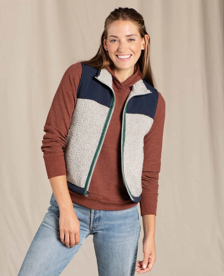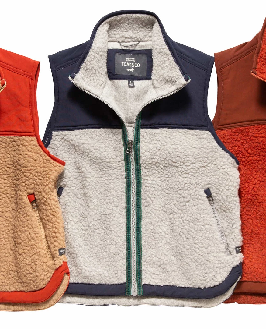 When the days turn frigid, let our Sespe Sherpa Vest be your guide. Vintage to the max, we’ve decked this piece out with pattern taping near the zip and color blocked textures that will warm your old soul. A cropped fit makes this vest primo for layering, and it’s made of all-recycled materials, too. Shine on, you cozy diamond.
